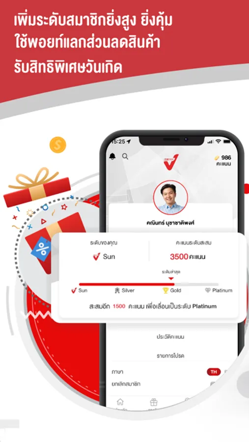 - SUN V Members can collect SUN Points to level up to get SUN Rewards, for example, vouchers and coupons.
