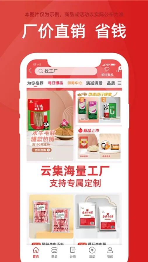 中国食品行业和餐饮行业的BBC采购批发平台。平台云集大量的食品企业、餐饮商家,热门带货博主等。用户和卖家通过下载U选易购APP,实现在线订货交易,商品OEM和个性化定制,让买家省去代理商渠道,销售渠道费,厂价直接配送到买方指定地点,做到一件也批发。