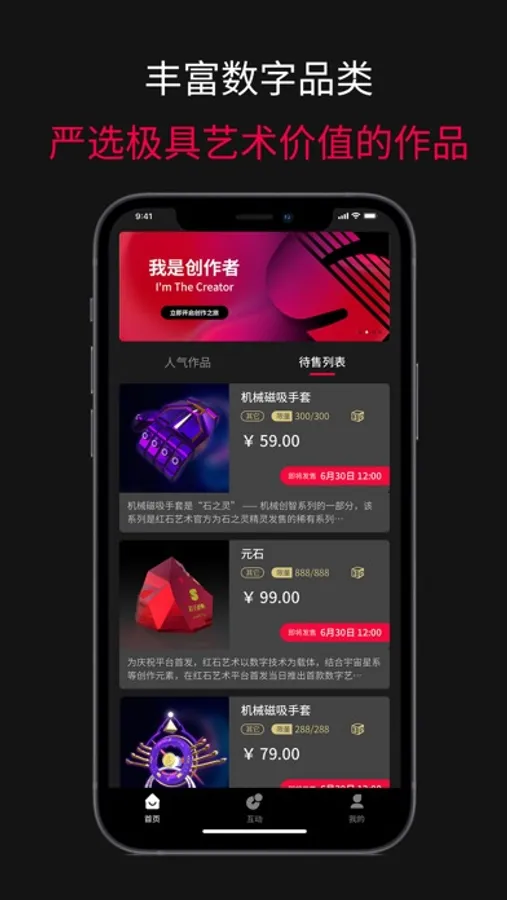 秉承艺术改变生活,人人都是艺术家的理念,在消费至上、审美同化的大环境中,希望通过搭建艺术的桥梁,为品牌/IP与消费者之间建立新的关系,让用户由简单粗放的消费者,变成品牌/IP的鉴赏家;在双方物质关系的基础上,建立起更紧密精神数字化链接。 红石艺术 希望用户在消费过程中,体验到艺术之美所带来的,更加赏心悦目的氛围感和舒适感,让用户享受到全新的消费升级体验。 同时,红石艺术使用全球最先进的区块链技术结合数字经济和实体产品,为交易保驾,为信息护航,为用户和品牌双方提供更加安全,稳定,可靠,顺畅的线上交易平台。