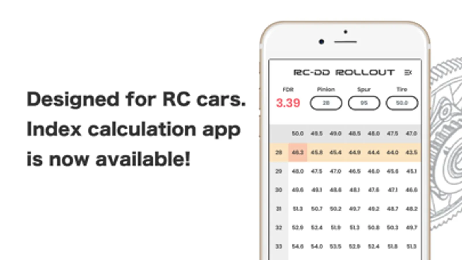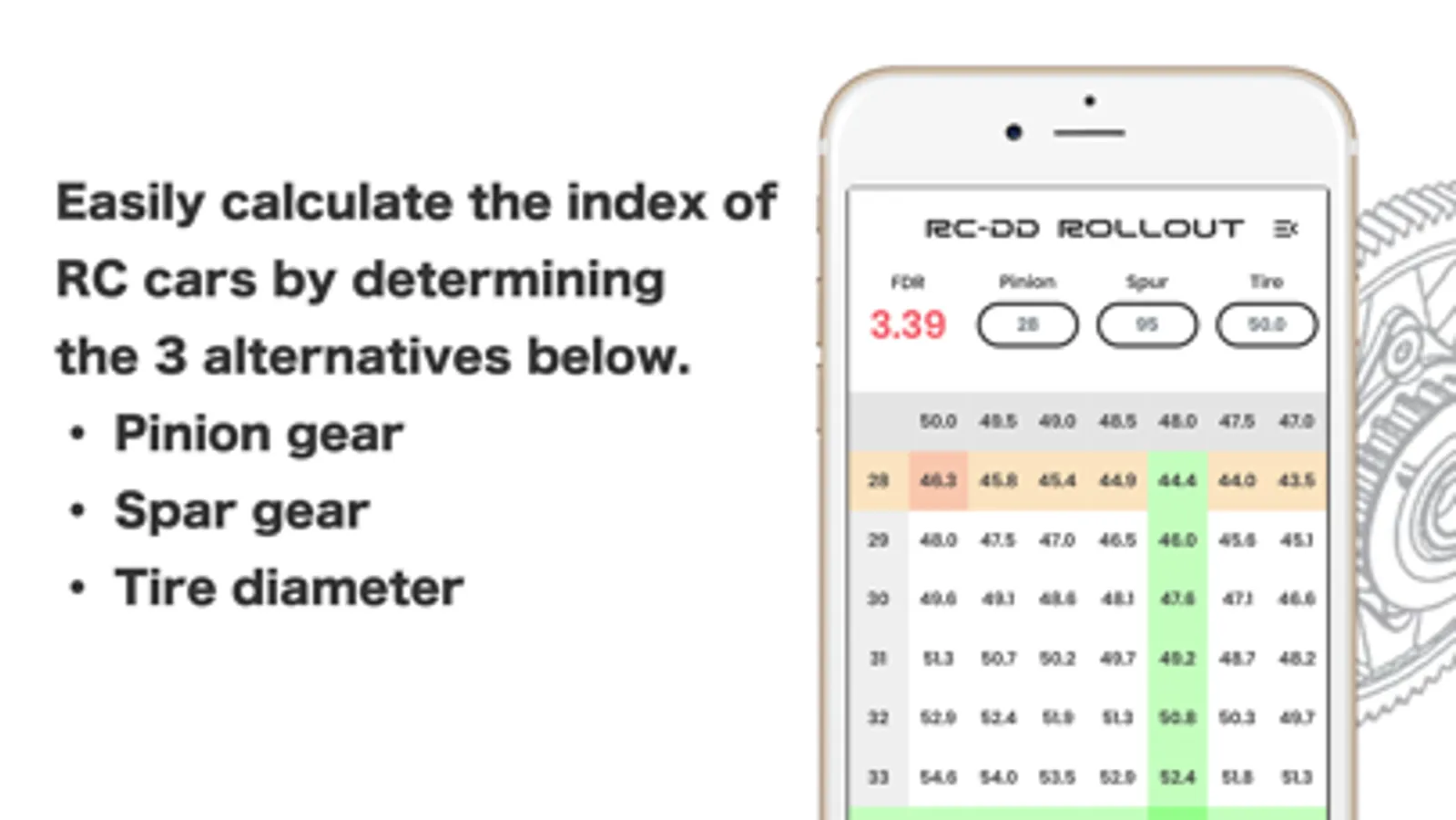 This application helps you perform the exponential calculation of machines with variable sponge tire diameters like F1 and 1/12 racing cars.