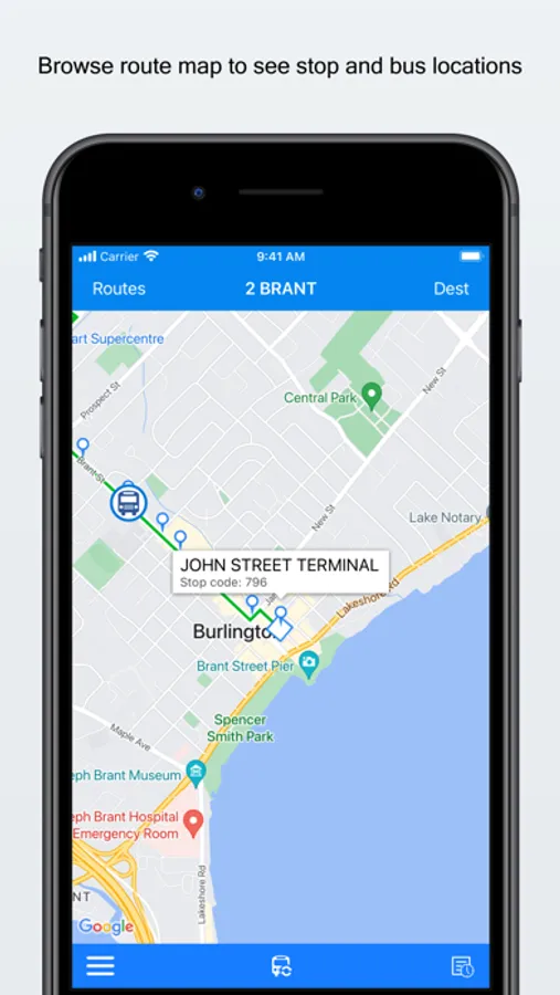 Note: Bus locations are updated based on service available from City of Burlington Transit service. Current refresh rate is set to 2 min.