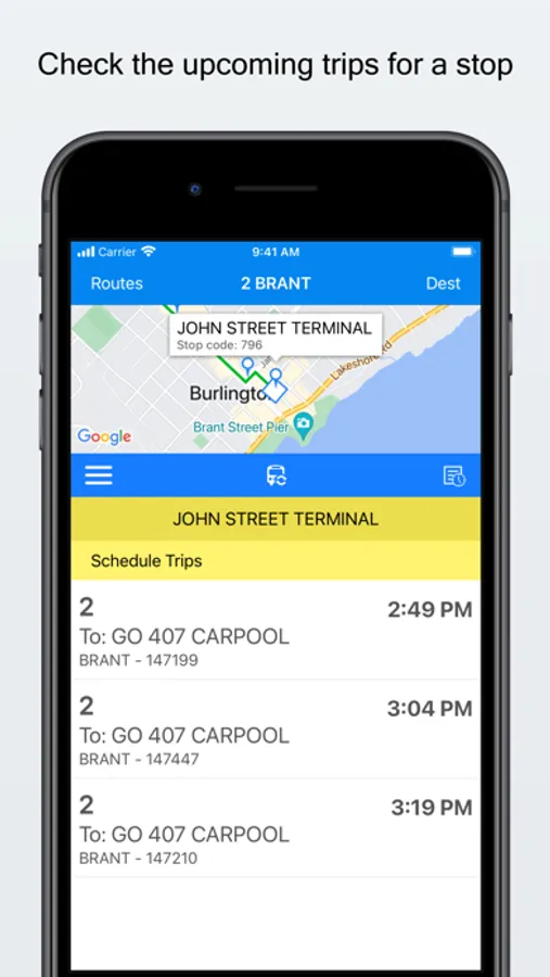 Get the upcoming bus arrival for City of Burlington Transit Service