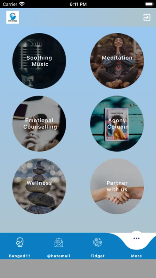 De-Stress application provides a unique interface for users to kill the stress quicker. The application has certain features which help users in diverting their attention toward a more constructive way to let out their anger and frustration using daily and seemingly smaller activities. De-Stress has a number of smaller games and wellness management options that channel the uneasiness of life to a better way of managing it.