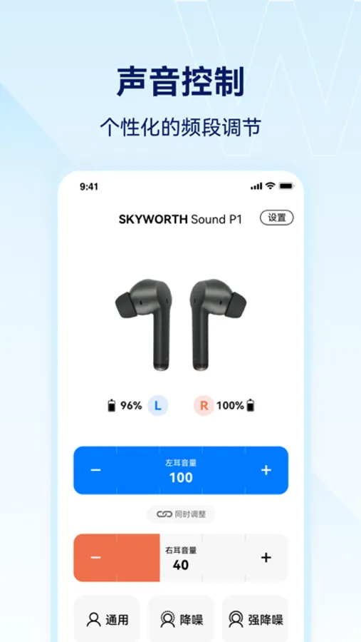 小维妙音APP 是一款支持耳内式助听器使用的APP,通过蓝牙连接助听器,可实现调节音量、频段增益调节、智能降噪等相关设置。