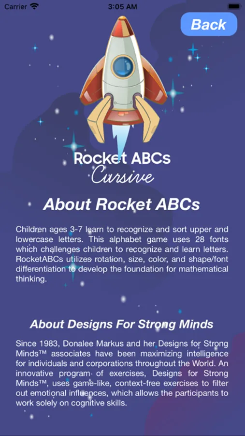 Children ages 8-12 learn to recognize and sort CURSIVE letters. This alphabet game uses 28 fonts which challenges children to recognize and learn letters. RocketABCs cursive utilizes rotation, size, color, and shape/font differentiation to develop the foundation for mathematical thinking.
