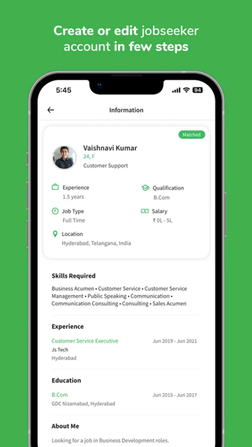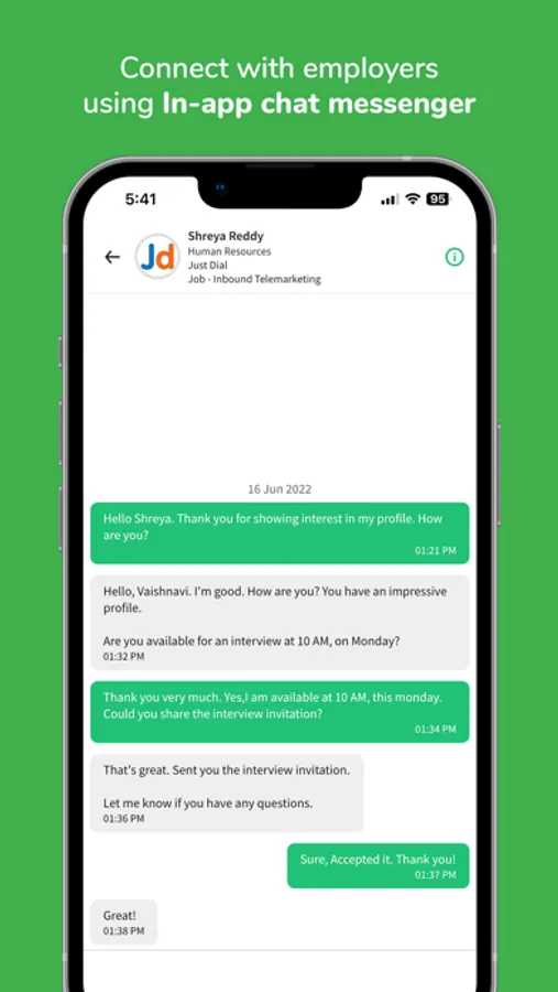 Instantly chat with the matched applicants and get to know more about their profile and experience.