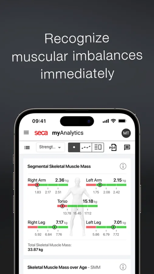 The seca myAnalytics app provides you with the results of the body composition analysis that you have performed at your fitness studio or with your nutritionist at any time.