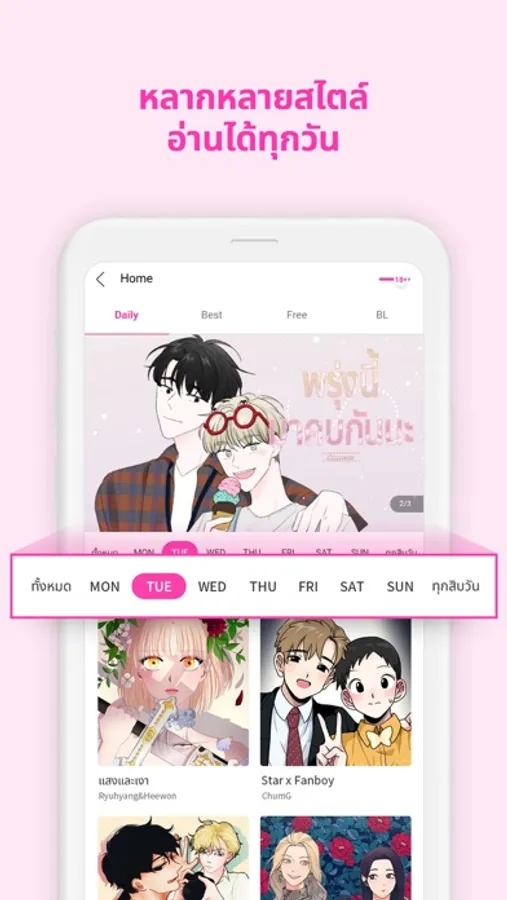 ไม่ใช่แค่วาย แต่ยังมีเว็บตูน มันฮวาสนุกๆ มากมายให้เลือกอ่านตามสไตล์ที่ชอบ ครบทุกรส ทั้งแฟนตาซี โรแมนติก ยูริ (Yuri, GL) อัปเดตตอนใหม่ทุกวัน ไม่มีเหงา