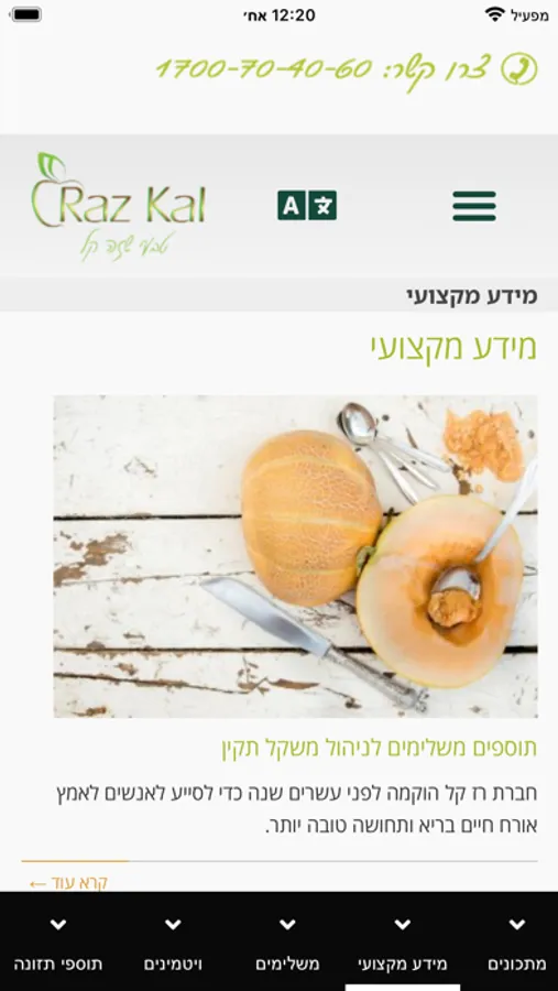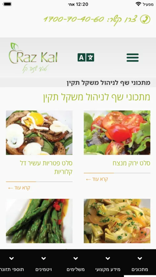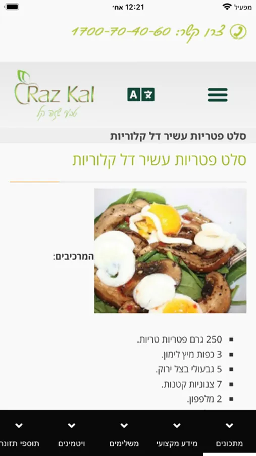 באפליקציה תוכלו לרכוש את מוצרי רז קל, לקבל טיפים ומדריכים וכן מתכונים מיוחדים וטעימים
