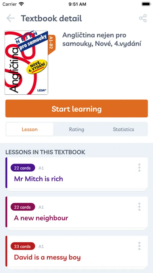 Naše komunita vytváří oblíbené učebnice v kartičkové podobě. S naší pomocí se budete moci učit konkrétní slovní zásobu z jednotlivých lekcí vybraných tištěných učebnic. Paralelní svět tištěných verzí učebnic a technologii mobilních zařízení (audio, dostupnost), Vám zajistí lepší produktivitu a efektivitu výuky.
