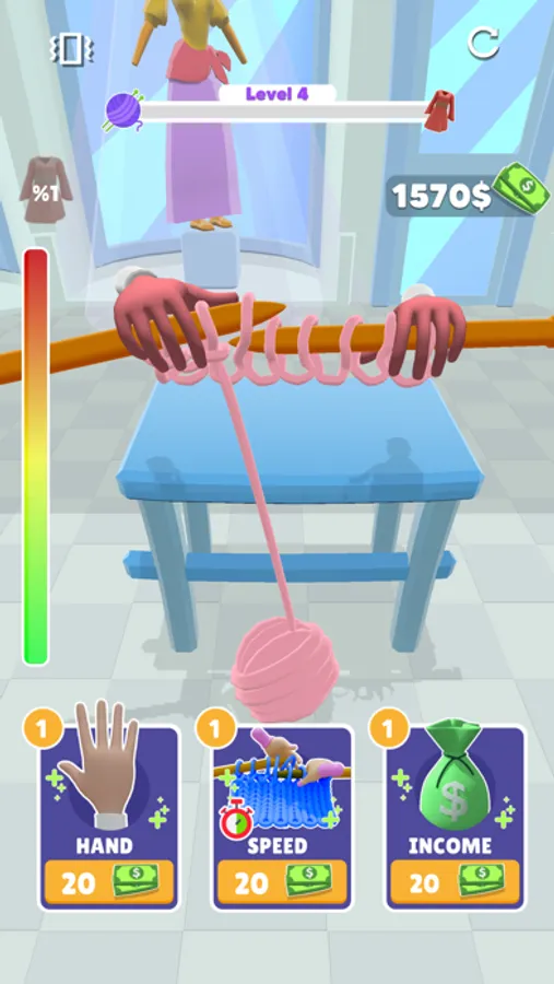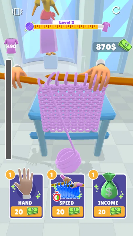 You have to knit fast for your work to catch up. Don't forget to upgrade with your earnings to be higher.
