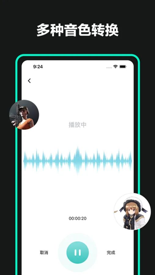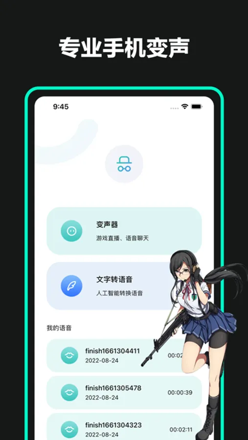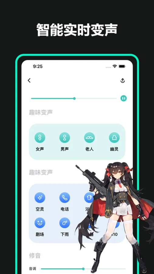 - 专业变声器,支持大叔、老人、女人等多种变声音效;