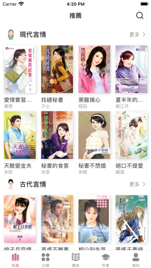 古靈,寄秋,樓雨晴,陽光晴子,典心,莫顏等數百名作家的萬本書籍都在等待翻閱哦~