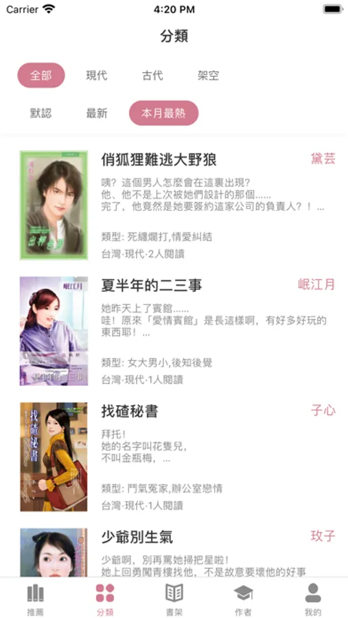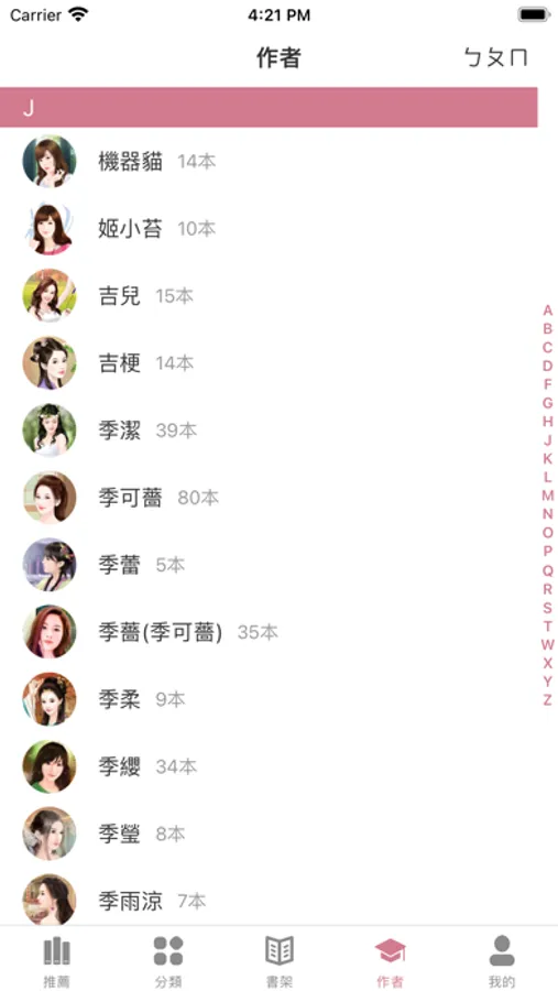 按作家分類,數百名作家的言情合集都在這裏,總計數萬本書籍。