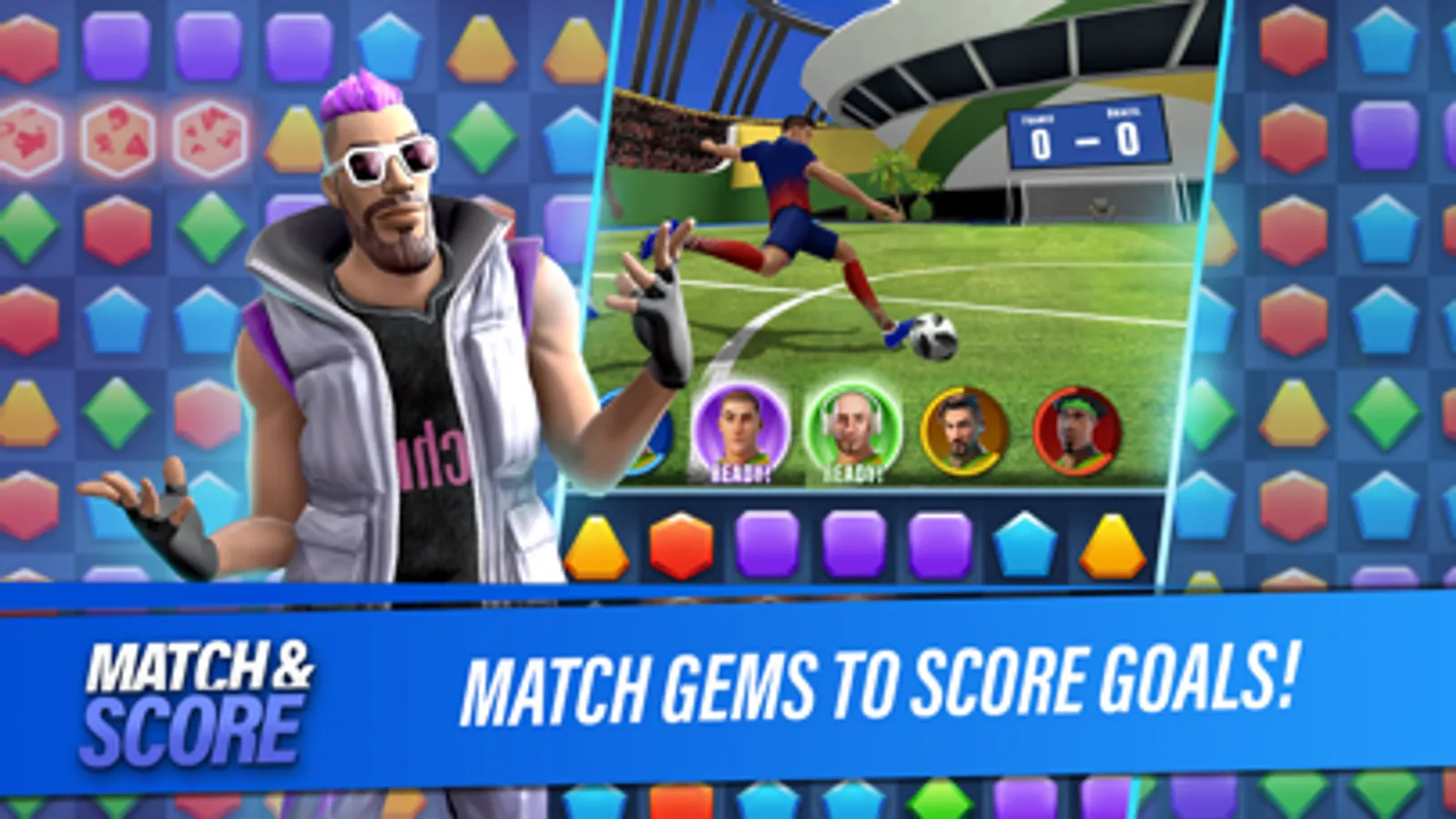 Match gems and score. Will you be the first to plant your team's flag atop the soccer strategy pyramid?