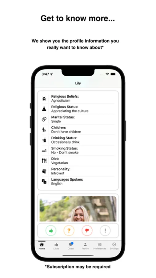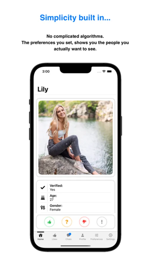 No complicated algorithms - the preferences you set shows you the matches you want to see.