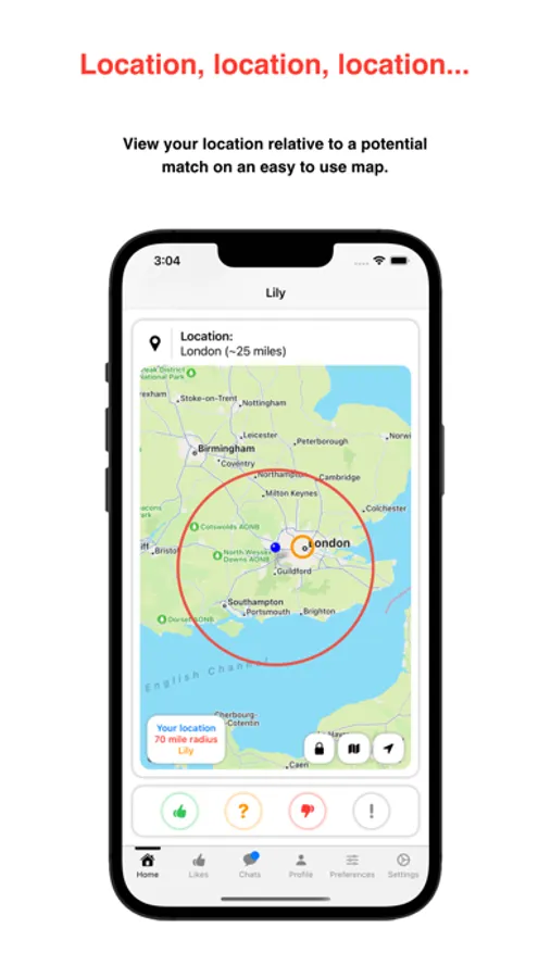 View your location relative to a potential match on an easy to use map - no more guessing where a place is.