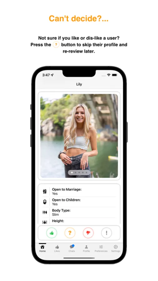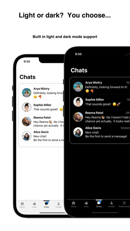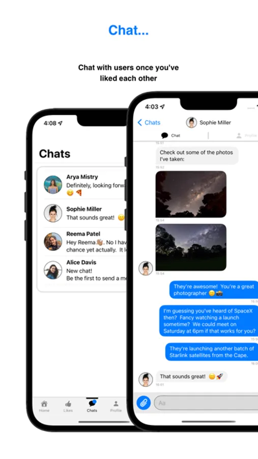 Chat with users once you've liked each other.