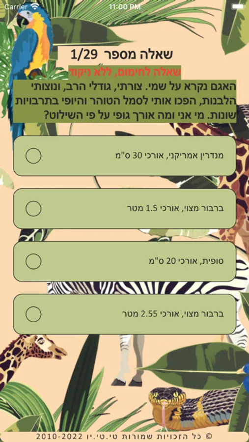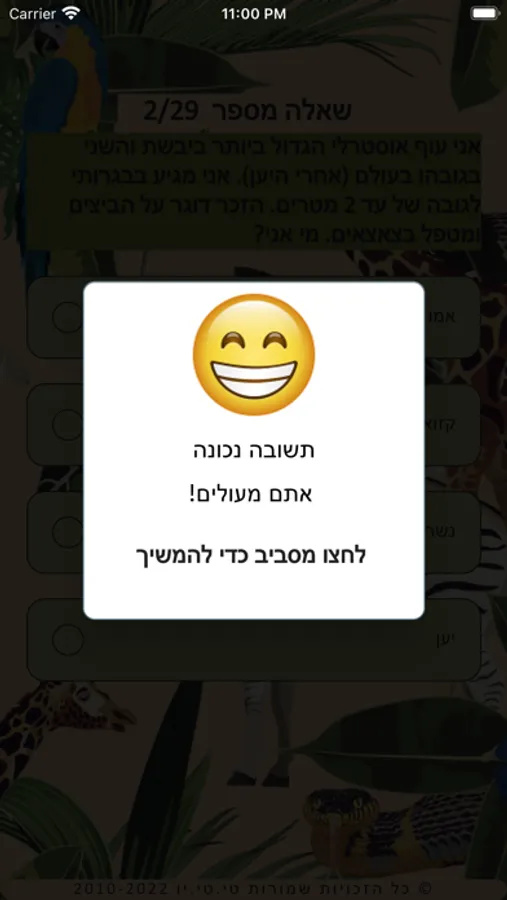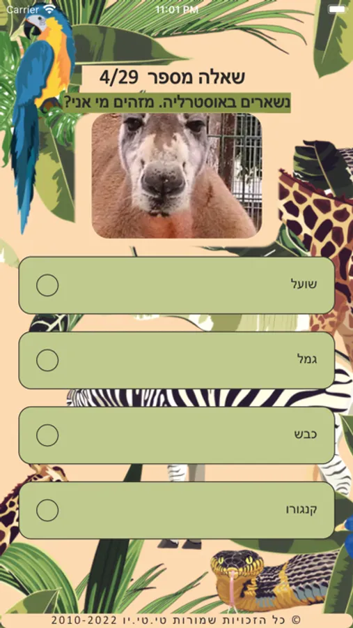 משחק בסגנון המרוץ למיליון בתוך החי פארק המתבצע באמצעות הסמארטפון.