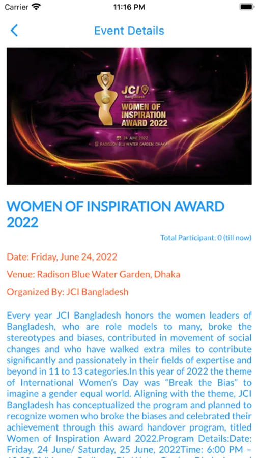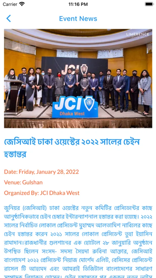 The App is designed to be a social instrument where the members can actively communicate, update and participate in events organized by JCI Bangladesh.