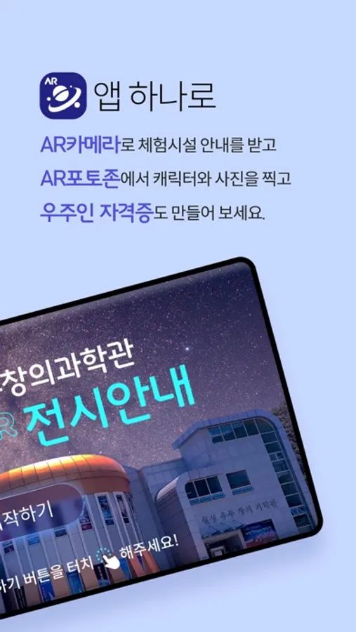 증강현실을 통한 거창월성우주창의과학관의 다양한 체험, 전시 내용을 안내받을 수 있는 어플리케이션 입니다.