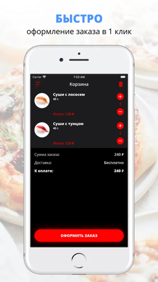Скачивайте наше приложение, оформляйте заказ и наслаждайтесь любимой едой, где бы Вы ни были! Приятного аппетита!