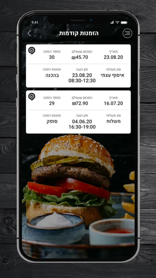 ניתן לבצע הזמנות ומשלוחים ישירות מהאפליקציה בורגר טאץ'