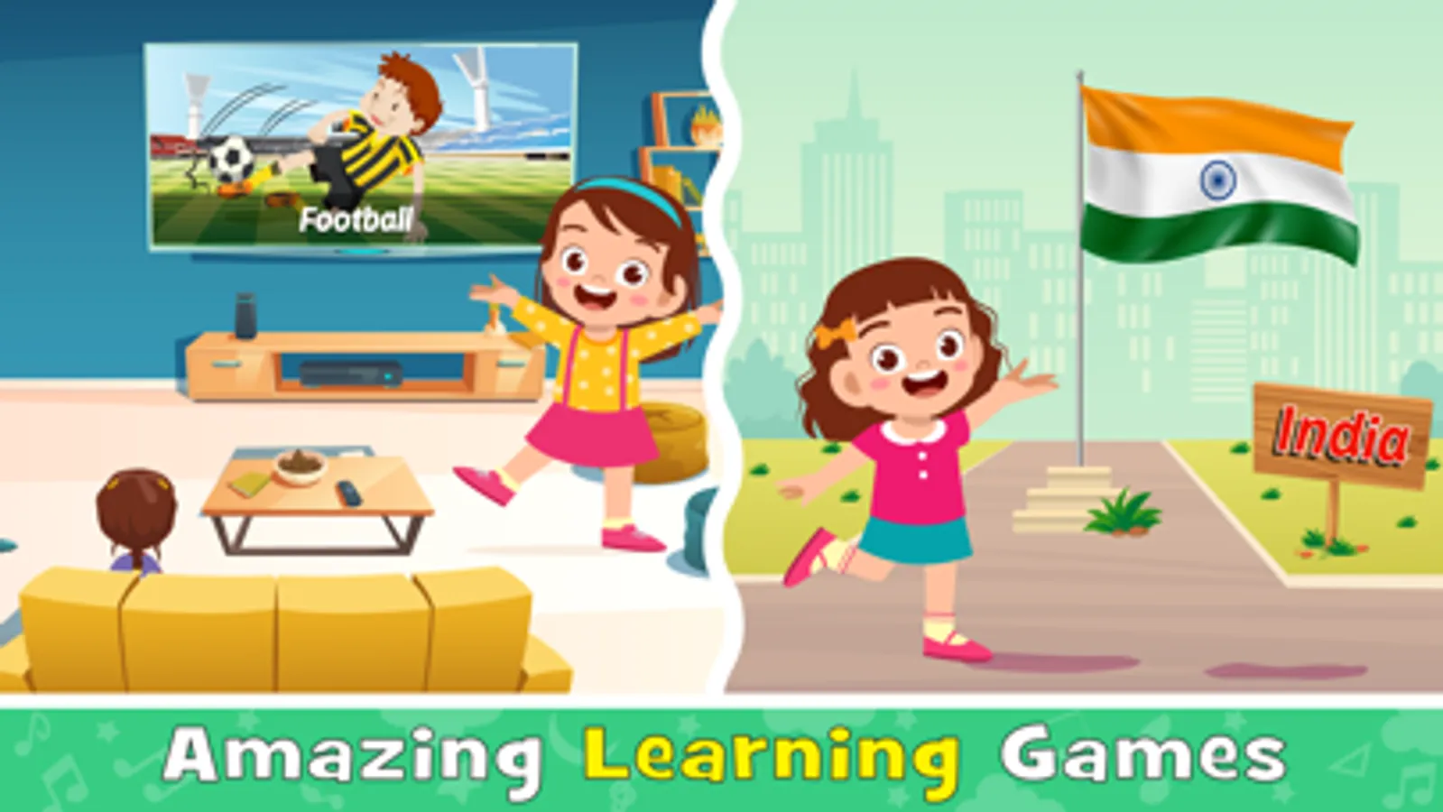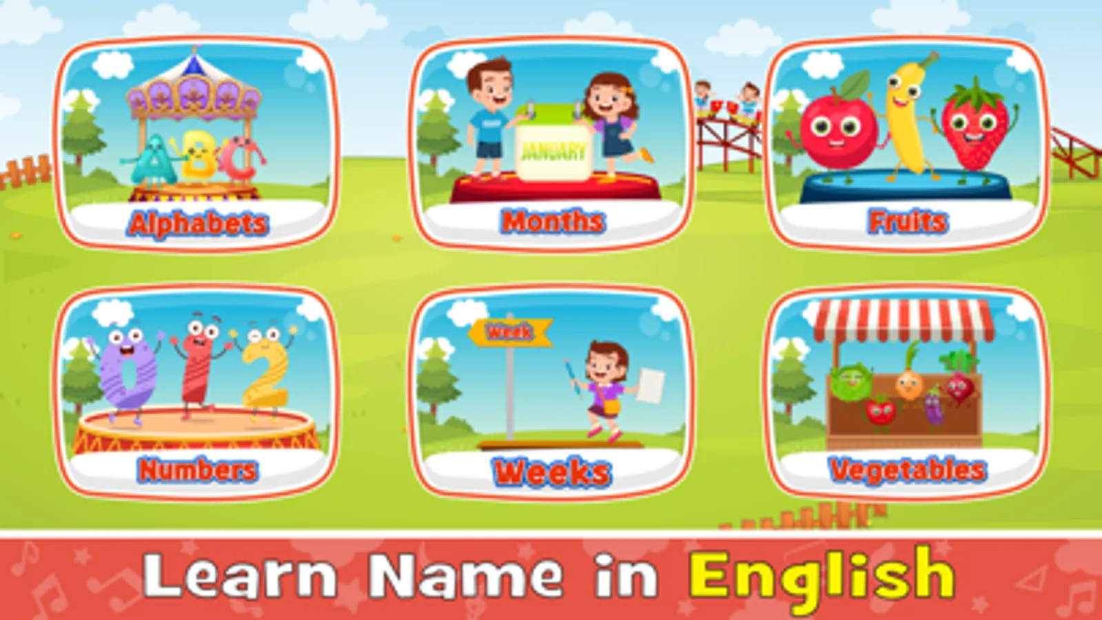 Learning English through games is one of the best ways to teach your child to speak English on his own. In this English Club game, your child can learn the English alphabet, numbers, English month, weekdays, vegetable and fruit names, food dishes and dry fruit names, vehicle, birds, and animal names, colours and shapes, job & occupation, name of computer parts, school stationery, seasons of the year, and direction names in English