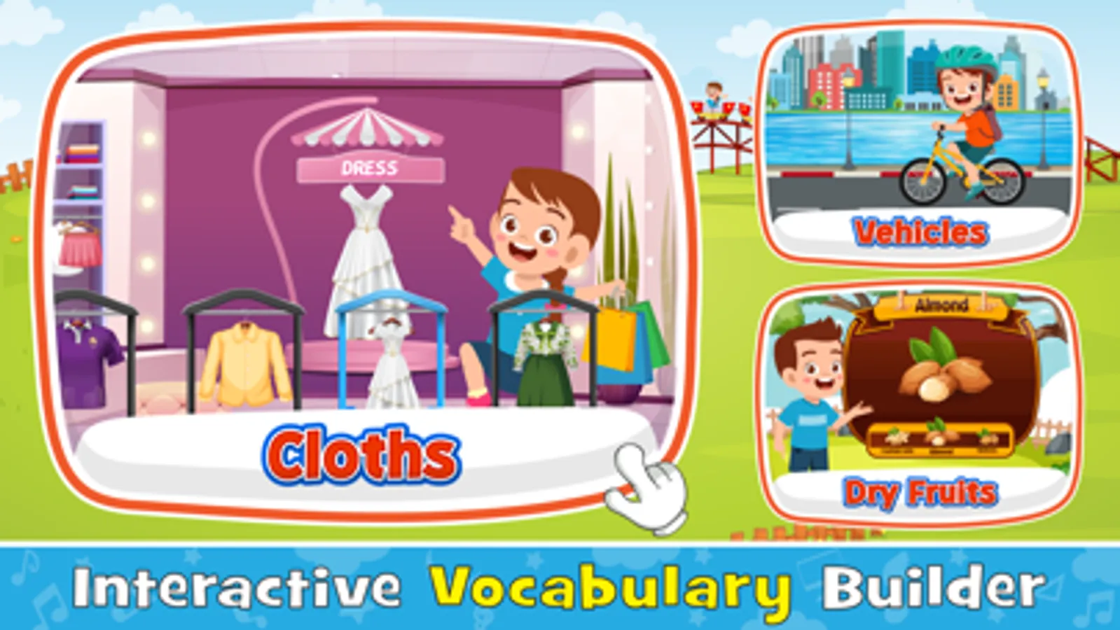 Our English learning game will prove very useful for your kids. It will help them to increase their English vocabulary and improve their English speaking skills and pronunciation. And also this game can assist them to develop motor skills, listening skills, social skills and memory
