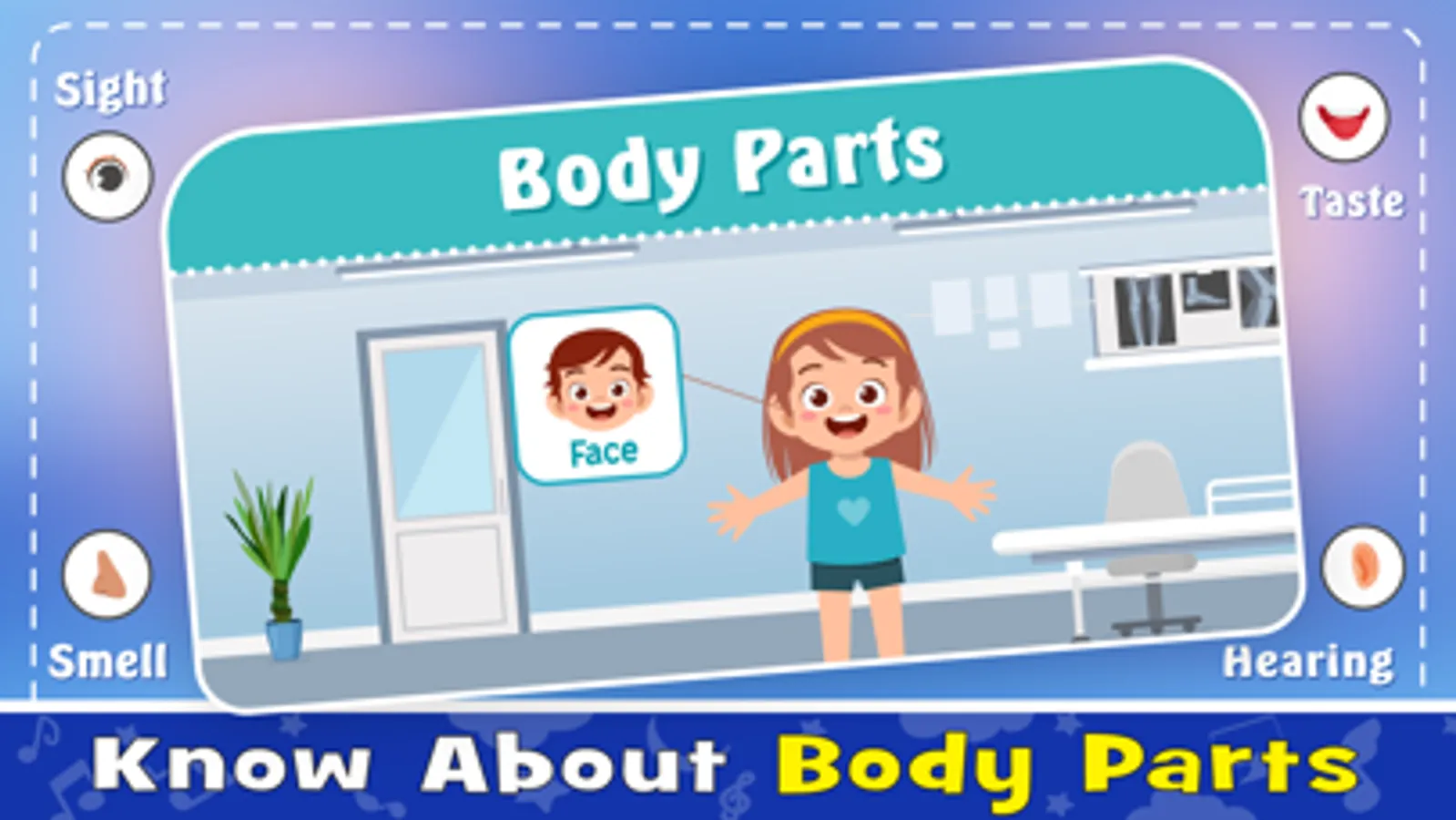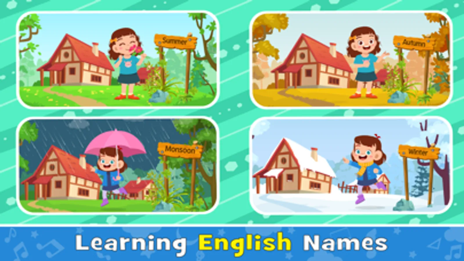 – Learn human body parts name in English, school stationery names, six-season name and compass direction name