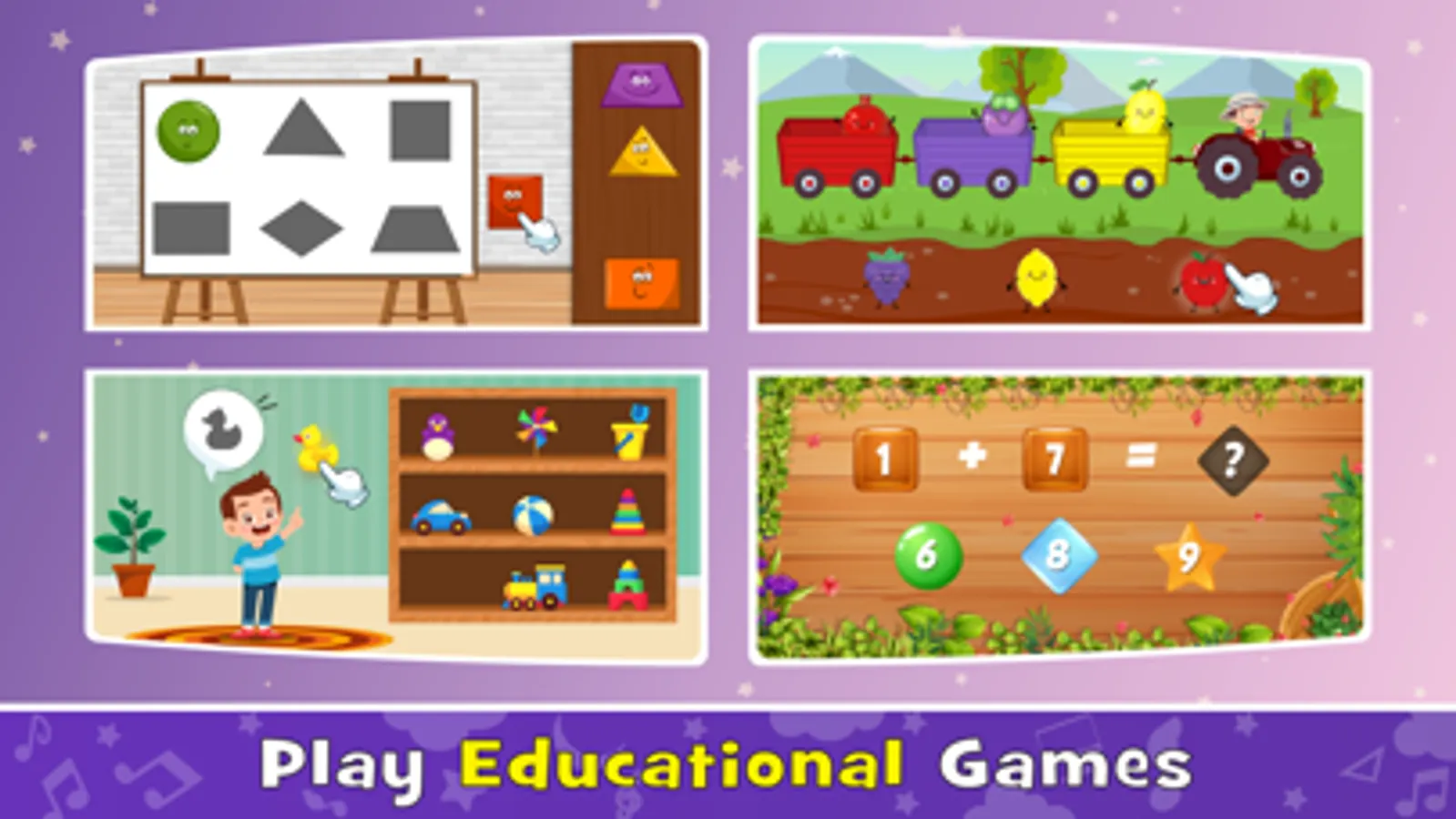 Along with the English learning game, your child can enjoy colourful and fun learning games to learn colors, drawing and shapes.