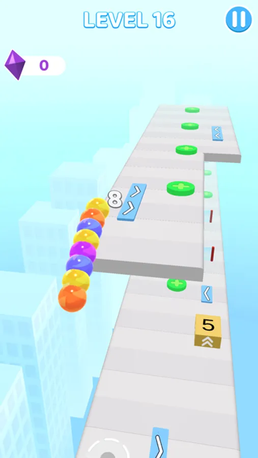 Tap on green tabs to collect more balls and navigate your way through simple but engaging levels. Change lanes by tapping on blue arrows, reach higher platforms with the help of box power-ups!
