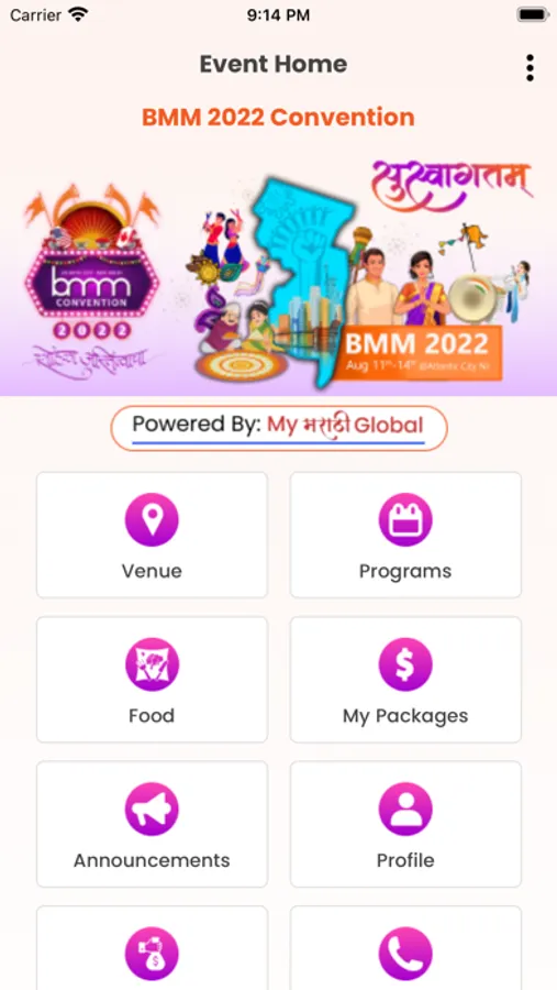 A custom app designed specifically for the attendees of the Indian Marathi, Bi-Annual global convention to be held in Atlantic City, NJ on August 2022. This event is organized by the Bruhan Maharashtra Mandal (BMM) of North America.