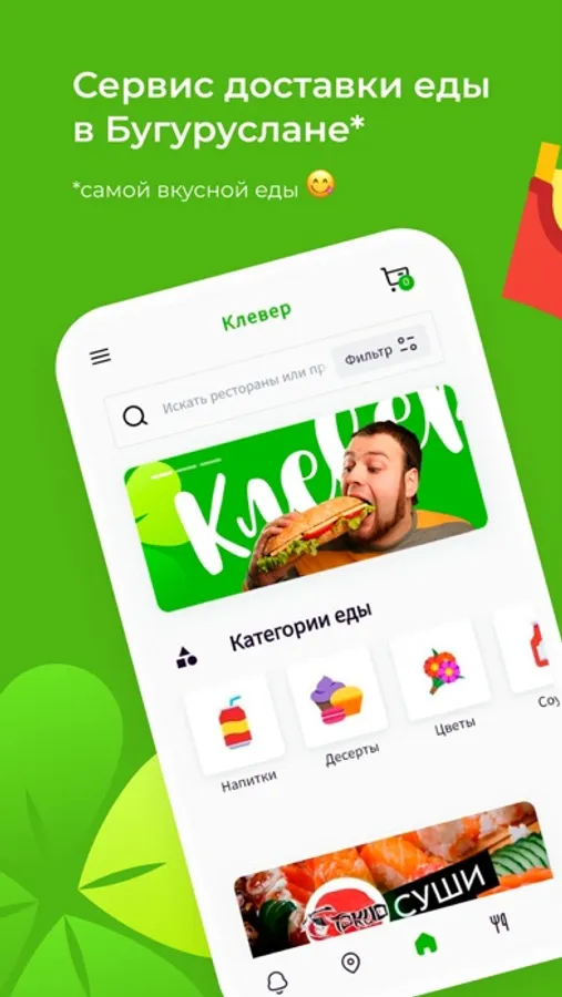 Сервис доставки продуктов и готовой еды в Бугуруслане. Доставка осуществляется силами наших курьеров или курьерами заведений Бугуруслана.