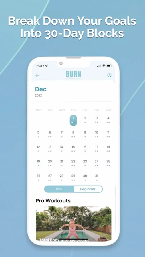 The BURN App teaches you this groundbreaking method, built upon by my years of experience in the fitness industry and helps you break down your goals into 30-day segments, making the big goals in life feel much less of a challenge.