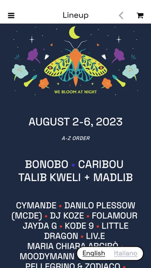 • il programma del festival suddiviso per singola giornata con la possibilità di poter acquistare ogni tipologia di biglietto;