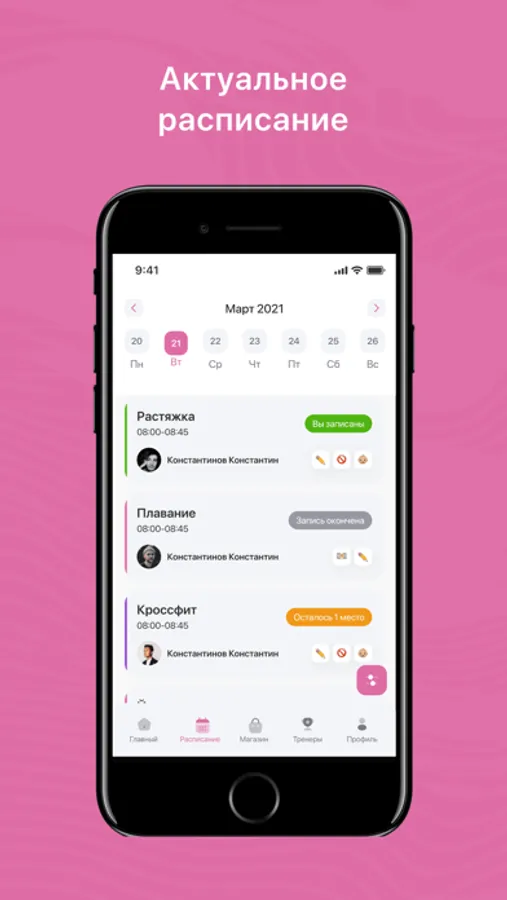 - Посмотреть актуальное расписание тренировок;