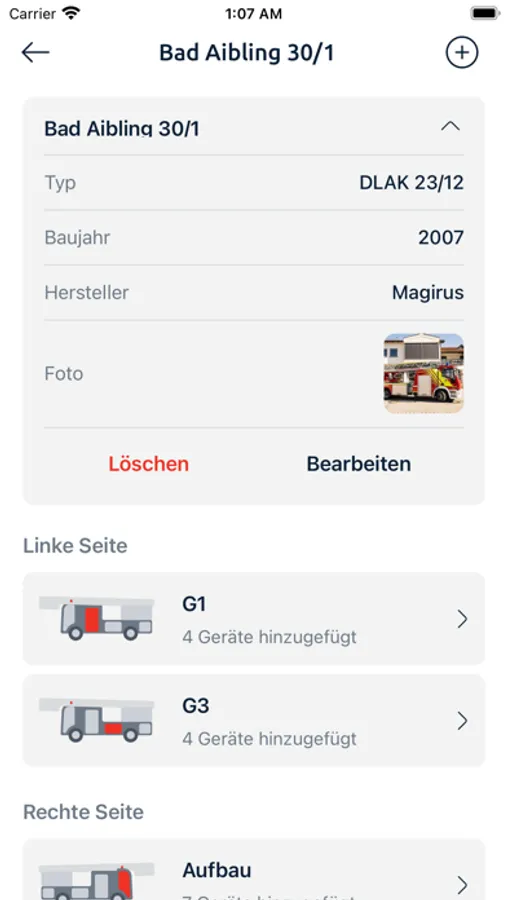 Der ELF lässt sich alle deine Gerätschaften deiner Fahrzeuge erfassen. Anschließend kannst du bequem nach einem Gerät suchen und Informationen darüber erhalten.