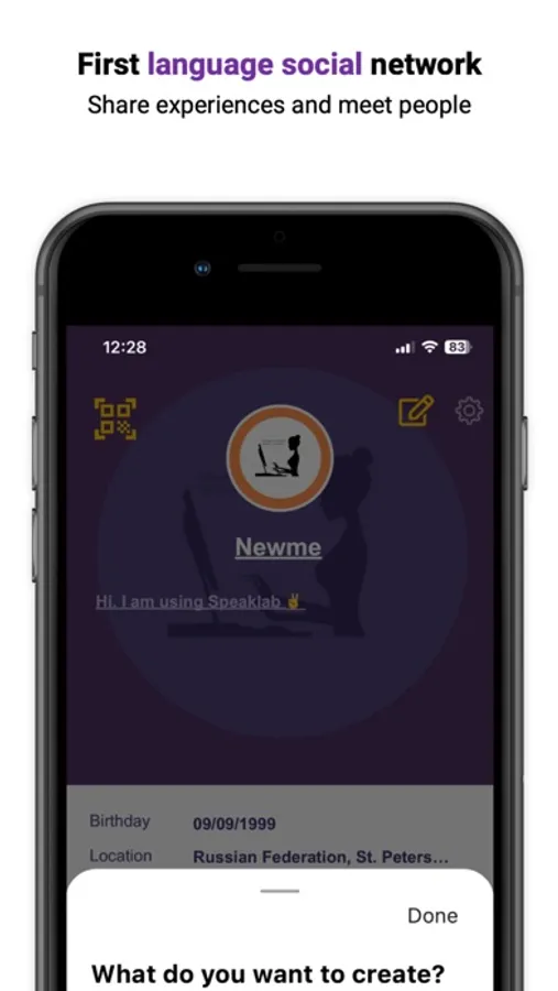 SpeakLab App is created to connect users worldwide and provide up-to-date information about language communities and language related events, both online and offline, test language level and provide recommendations with the help of AI technologies.