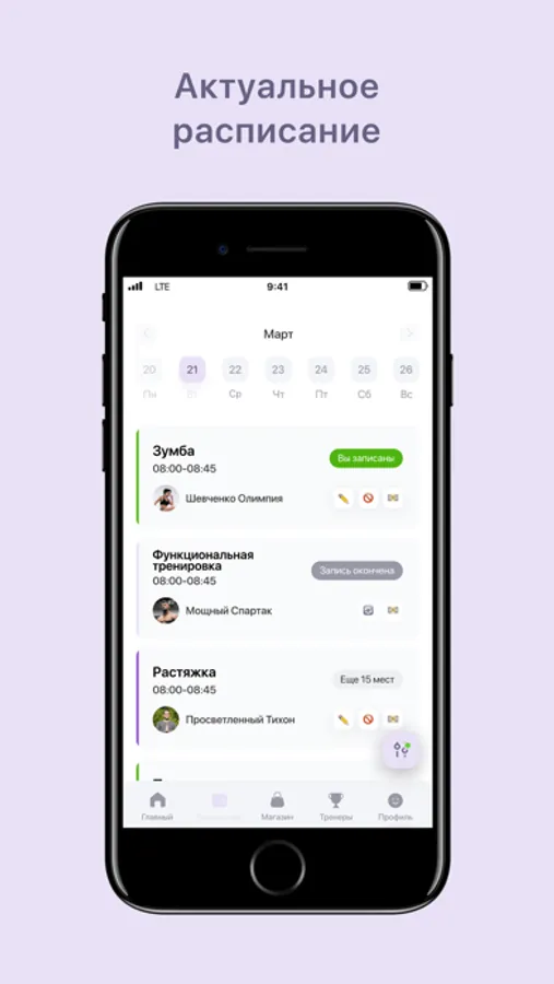 - Получать PUSH-уведомления о предстоящей тренировке за 3 часа;