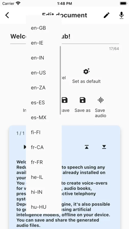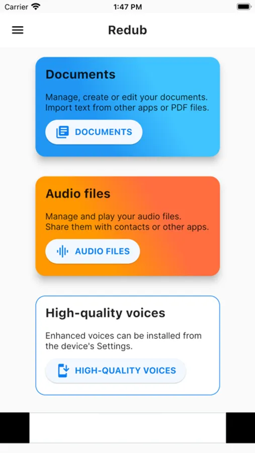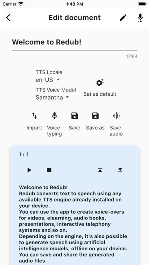 Redub turns text into speech that can be saved as audio files and shared with other people or used in other apps for free.