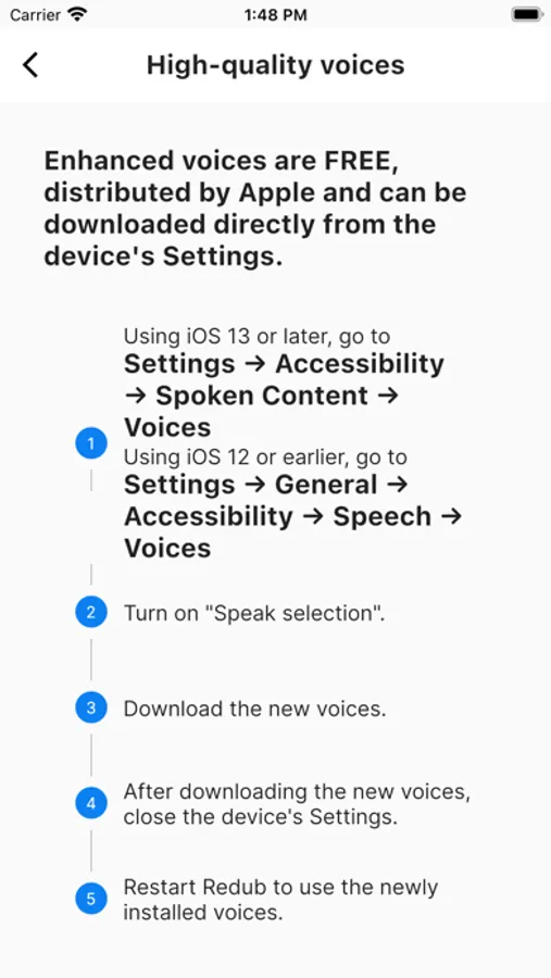 Close the Settings app and restart Redub to use the new voices.