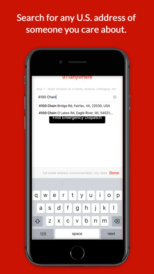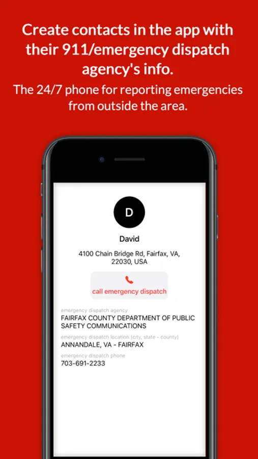 Dialing 911 on a phone connects you with the 911 agency near you. For an emergency in a distant location, you would need to report the distant address to this operator, who would need to research which agency covers that location and how to contact them, wasting precious time. The methods and speed with which local 911 agencies can handle these distant emergencies vary greatly, if an agency has the capability at all. 911anywhere lets you contact the distant 911/emergency dispatch agency immediately and your contact’s address is already displayed to you in the app. Seconds save lives!