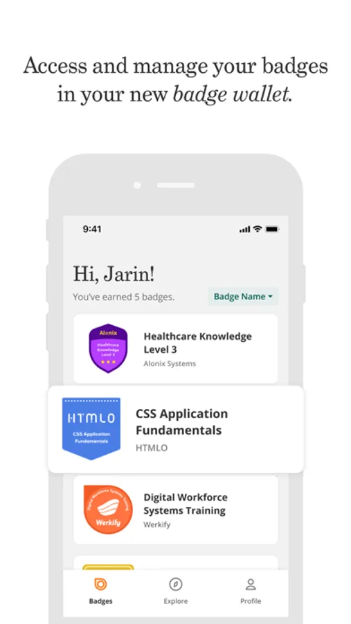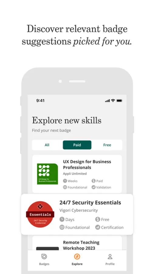 · Discover new skills: Explore badges from thousands of organizations and get personalized recommendations based on your career goals.