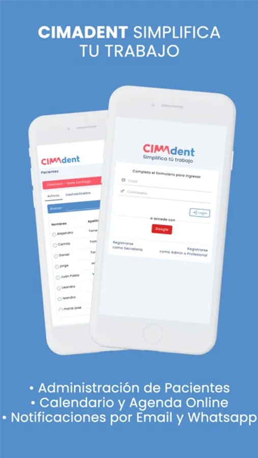 CIMADent es un Software Odontológico para la gestión de clínicas y dentistas que trabajan en distintos lugares que te ayudará a organizar tus pacientes y sus fichas, además de ser muy fácil de usar.