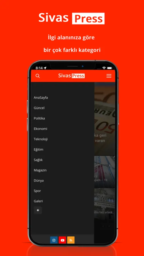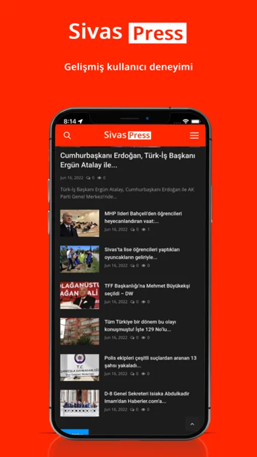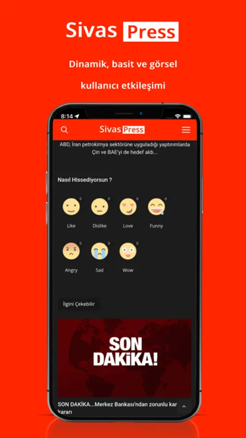 Sivas Press uygulaması ile ulusal ve uluslararası kaynaklardan Dünya, Türkiye ve Sivas ile ilgili en güncel haberlere konularına göre kategorize şekilde ulaşabilirsiniz.Haberler, haberin kaynağındaki haliyle ve kaynağı belirtilerek şeffaf şekilde sunulur.Uygulama gelişmiş kullanıcı deneyimi ve dinamik kullanıcı etkileşimi sunar.