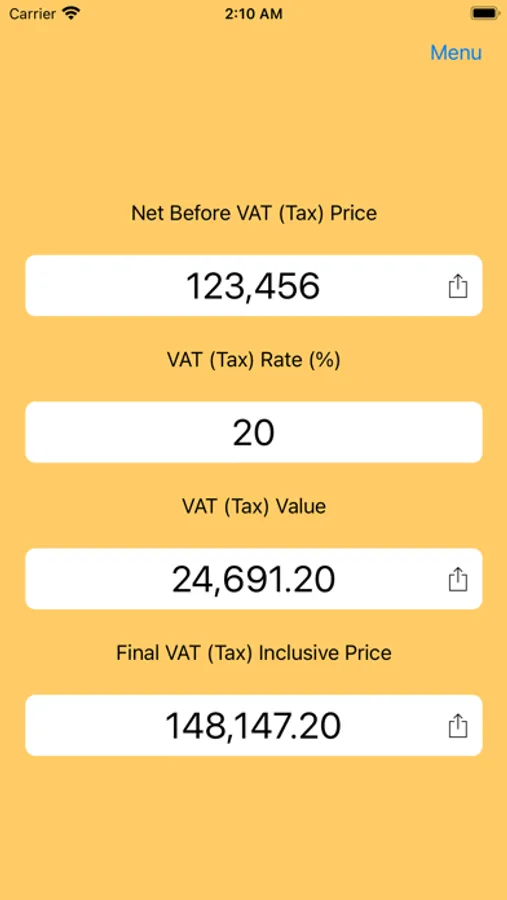 • Type your price and tap Calculate button to show result