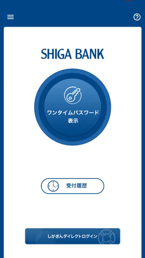 アプリ上に表示される「ワンタイムパスワード」によりお取引を行いますので『しがぎん』ダイレクトを安全にご利用いただくことができます。