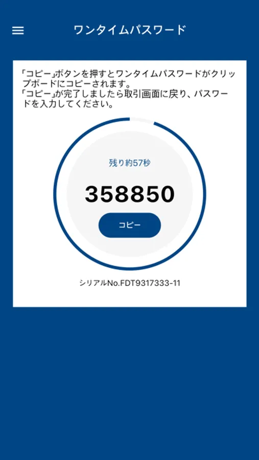 ※ワンタイムパスワードとは、一定時間内に1回限り有効なパスワードです。