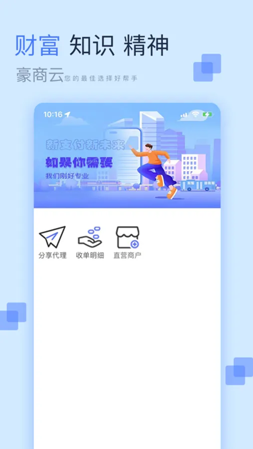 豪商云是一款您身边的移动助手,主要通过分享,进行邀请好友,直营团队是加入直营团队,机具管理和直营商户等功能